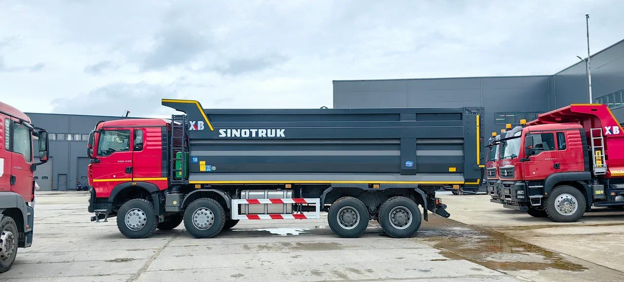 Современные самосвалы HOWO T5G 2024 года выпуска. Грузоподъёмность 40 тонн, колёсная формула 8x4. Высокий борт для любых типов грузов.